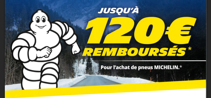 PREPARER L HIVER , nous vous proposons des remises jusqu ‘a 120E SUR LES PNEUS MICHELIN